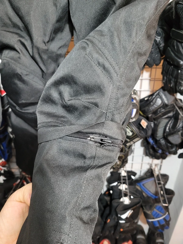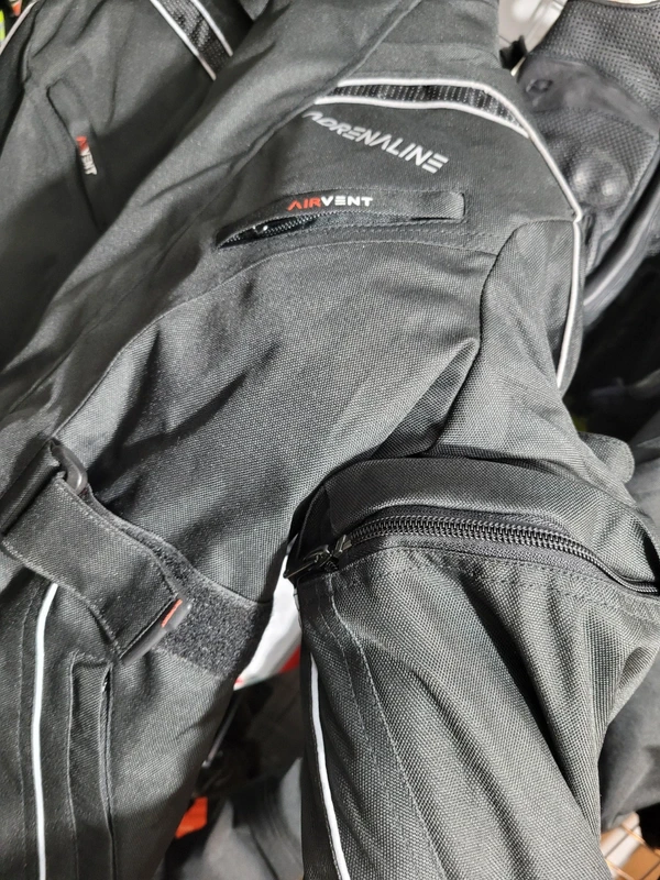 Posiada certyfikat PPE (środek ochrony indywidualnej) oraz wyjmowane protektory barków, łokci i kolan. Materiał: Wytrzymały poliester 600D, odporny na przetarcia.
